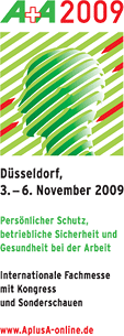 Wir stellen aus auf der A+A in Düsseldorf vom 3.11. - 6.11.2009. Internationale Fachmesse für Sicherheit + Gesundheit bei der Arbeit Persönliche Schutzausrüstung und Betriebliche Sicherheit Sie finden uns in Halle 3 Stand 3D44 |