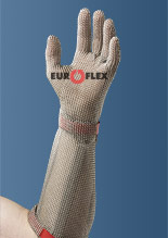 | Alle EUROFLEX ® Vollmetall-Sicherheitshandschuhe werden in 7 Größen hergestellt und entsprechen der Europäischen Norm EN 1082-1 und EN 14328. Sie bestehen aus einem Edelstahl-Ringgewebe mit einzeln verschweißten Ringen. Die Schutzhandschuhe werden mit persönlicher Kennungs-Plakette und Seriennummer geliefert und passen universell für Rechts- oder Linkshänder. Auf alle Modelle gewähren wir eine Garantie von 24 Monaten. | |
